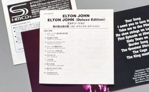 ELTON JOHN/ELTON JOHN<Deluxe Edition>僕の歌は君の歌+20<デラックス・エディション>のCD番号はUICY-93678/9、レコード会社はユニバーサル・ミュージックです。とにかく聴いてみてください。SHM-CDとは・・・通常のCDとは別種の、液晶パネル用ポリカーボネイト樹脂を採用、素材の透明性が格段に向上したことにより、マスター・クォリティに限りなく近づいた高音質CDです。と説明されています。まあ、なかなか難しいのですが、とにかくオリジナル音源を忠実に再現されたもののようです。また、SHM-CD盤は全てのCDプレーヤーで再生可能と説明にあります。こうゆうところは非常に大事なことですよね。
